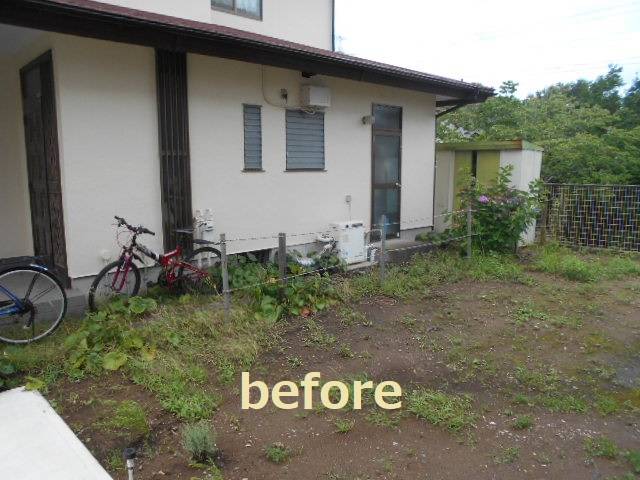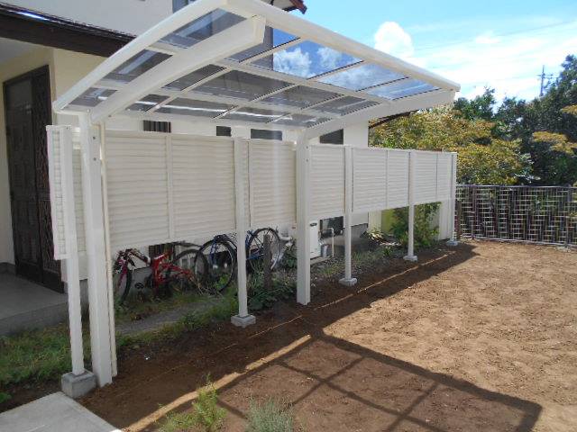 庭部分に目隠しフェンスとサイクルポート施工しました。