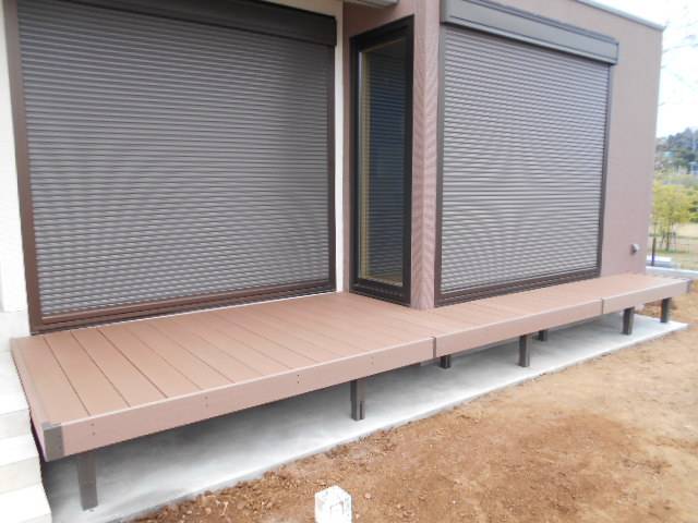 掃出し前には樹脂製ウッドデッキを配置し完成です。