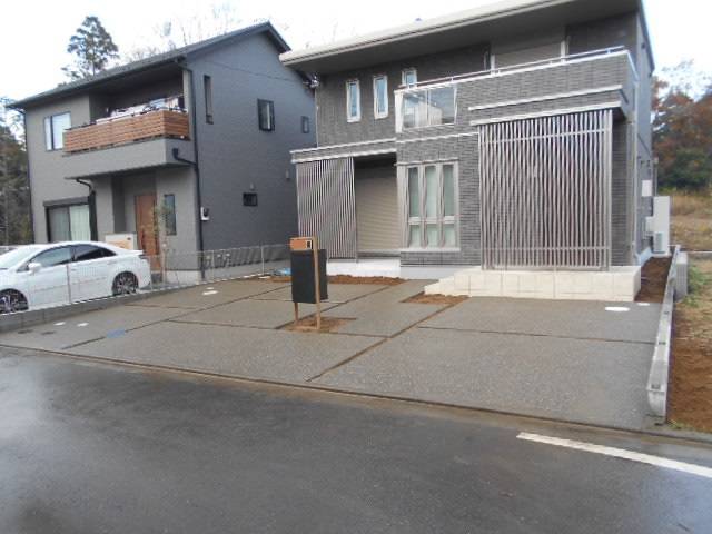オープン外構、道路設置面は舗装し駐車場兼アプローチとなります。