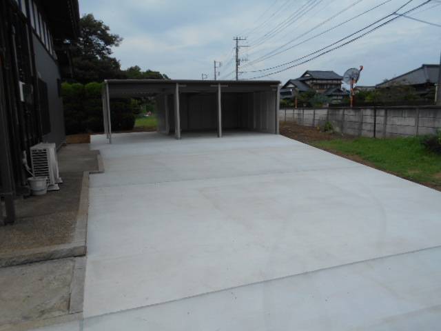 既存建物解体後に車道舗装含むガレージ設置工事です。