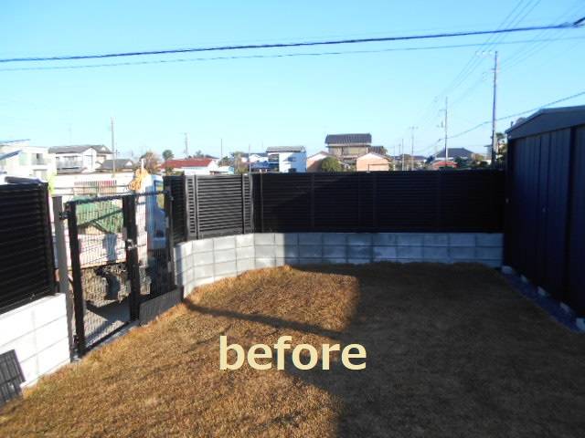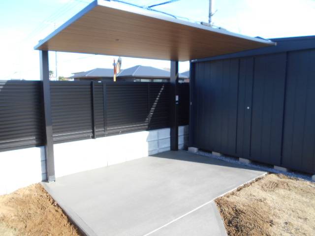 庭に駐輪スペース工事です。